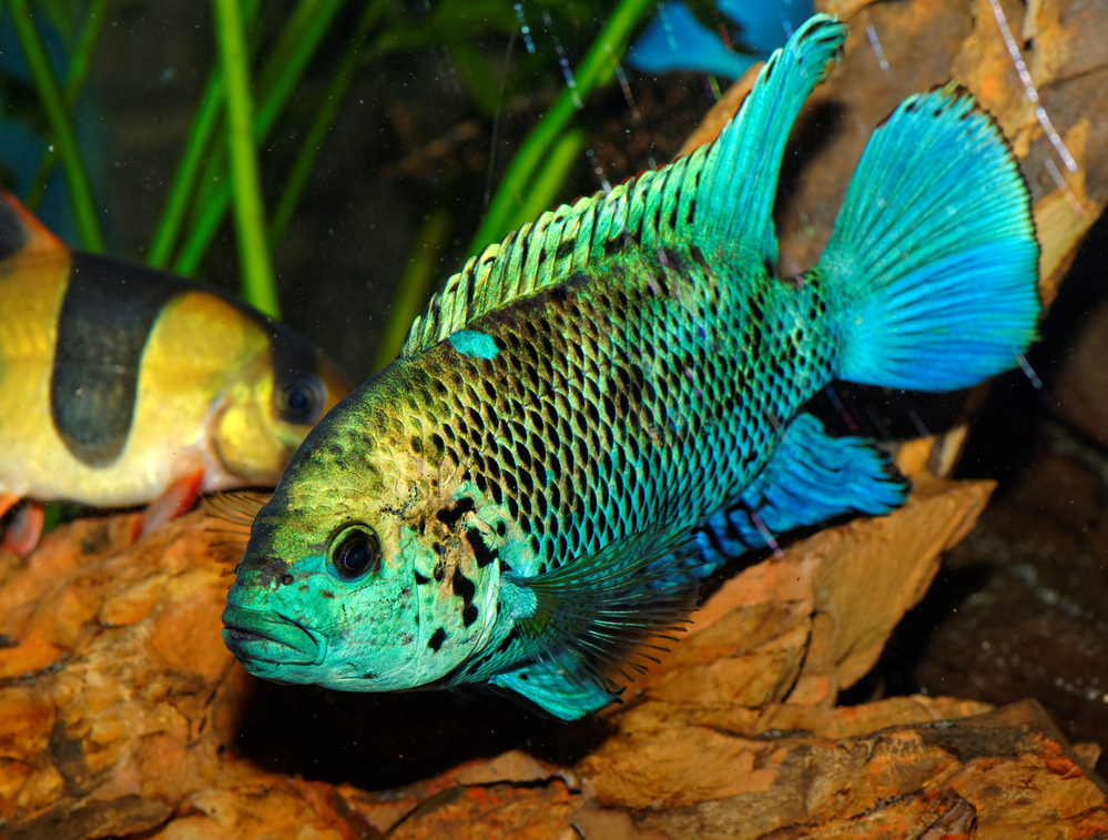 Акара бирюзоваяВеликолепный представитель крупных южноамериканских цихлид.