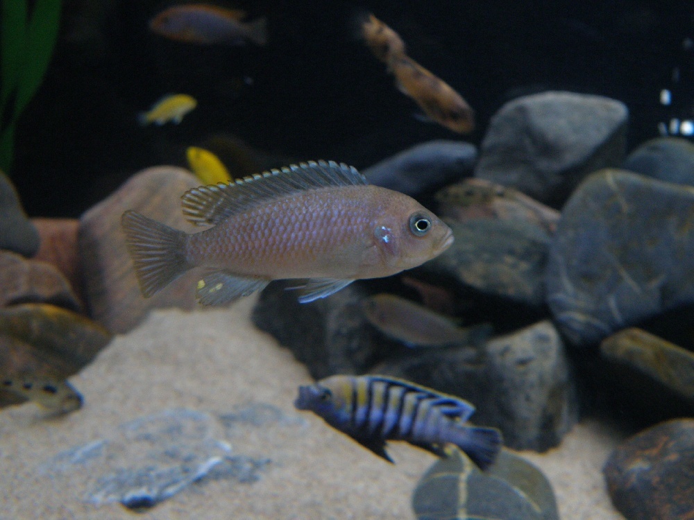 Содержать рыбок лучше всего группами из самца и нескольких самок в аквариумах от 100 литров. Оформить аквариум лучше всего в минималистком стиле: песчаный грунт, коряги, камни, минимум живых растений, – который наиболее близок к природным ландашфтам озера Малави.