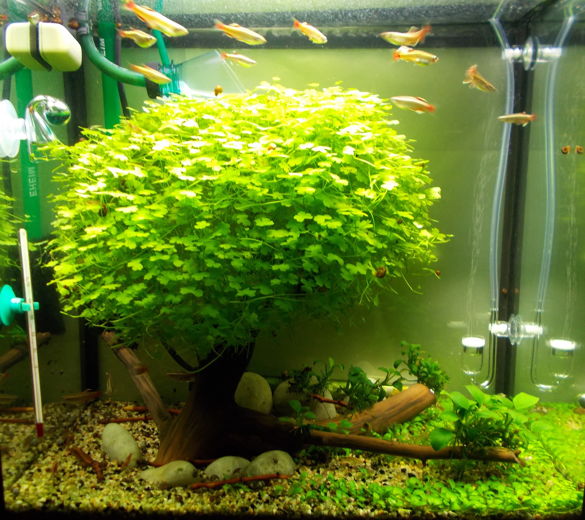 Благодаря этому при соблюдении правильных пропорций рыбы и растений можно исключить использование воздушного компрессора. В результате сильно снижаются шумовые эффекты, уменьшается количество проводов и создается естественность водоема.