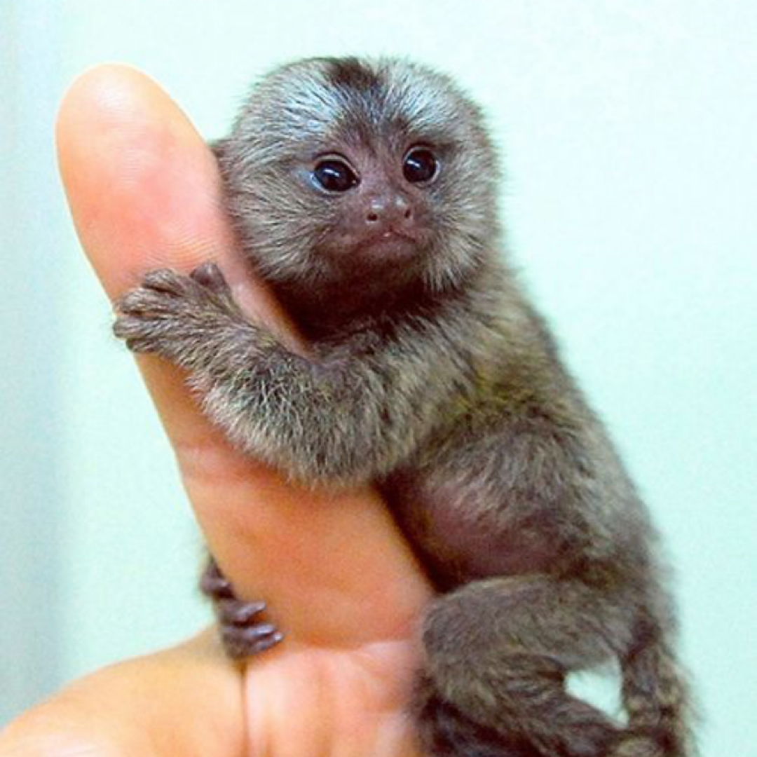 Самый маленький представитель обезьян – карликовая игрунка или карликовая мартышка. Также называются мармозетками.Длина тела этих миниатюрных животных не превышает 15 сантиметров, при этом хвост может достигать 22 см. Но несмотря на длину, хвост у игрунок нехватательный. Вес у них также невелик: 100–190 грамм.