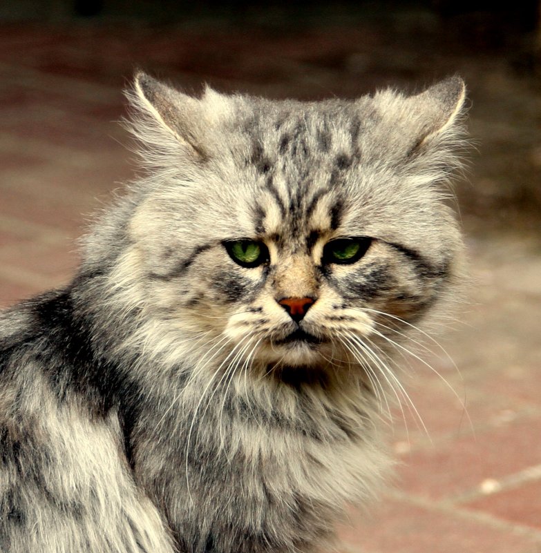 Расстроенный кот выглядит более угрюмым, мало двигается, опускает хвост и прижимает его к задним лапам в присутствии хозяина.