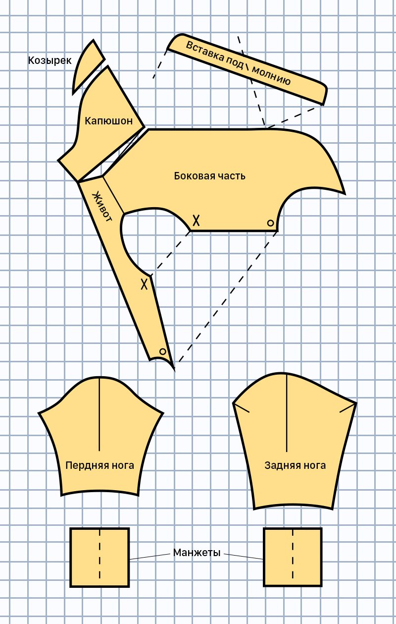 Выкройка комбинезона для собаки является одним из самых основных моментов. Чем точнее вы построите выкройку, тем лучше комбинезон будет «сидеть» на вашем пушистом друге.