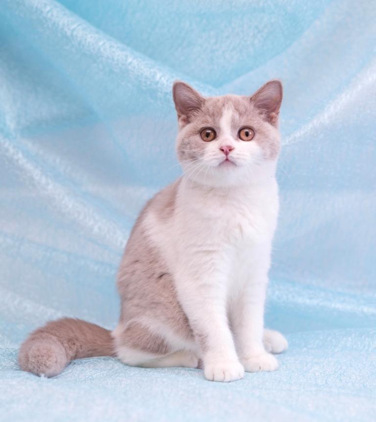 Мама — британская кошка лилового окраса, папа — бритаский кот окраса фавн. В результате этой вязки родились