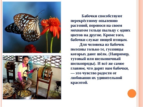 13. Бабочки занимают второе место после пчел по опылению растительного мира.