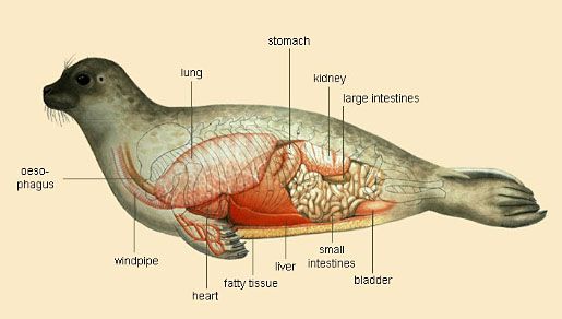 требуют этого больше всего (сердце, легкие и мозг) (SeaWorld, 2005).
