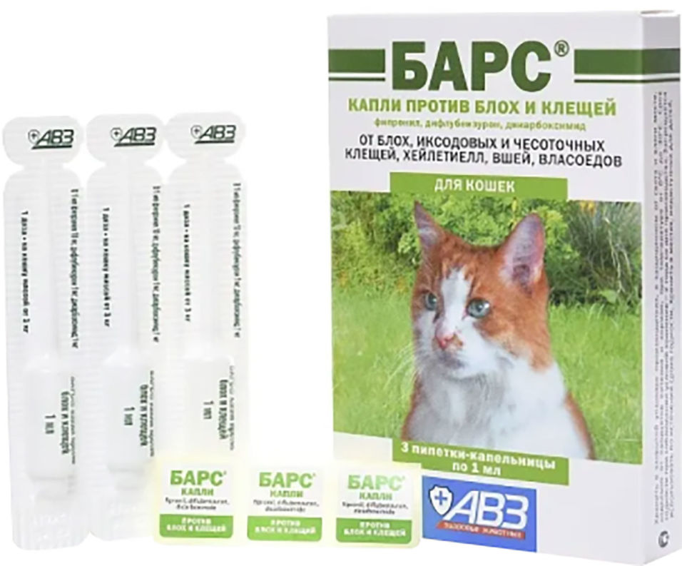 Капли инсектоакарицидные Барс Форте для кошек: | |