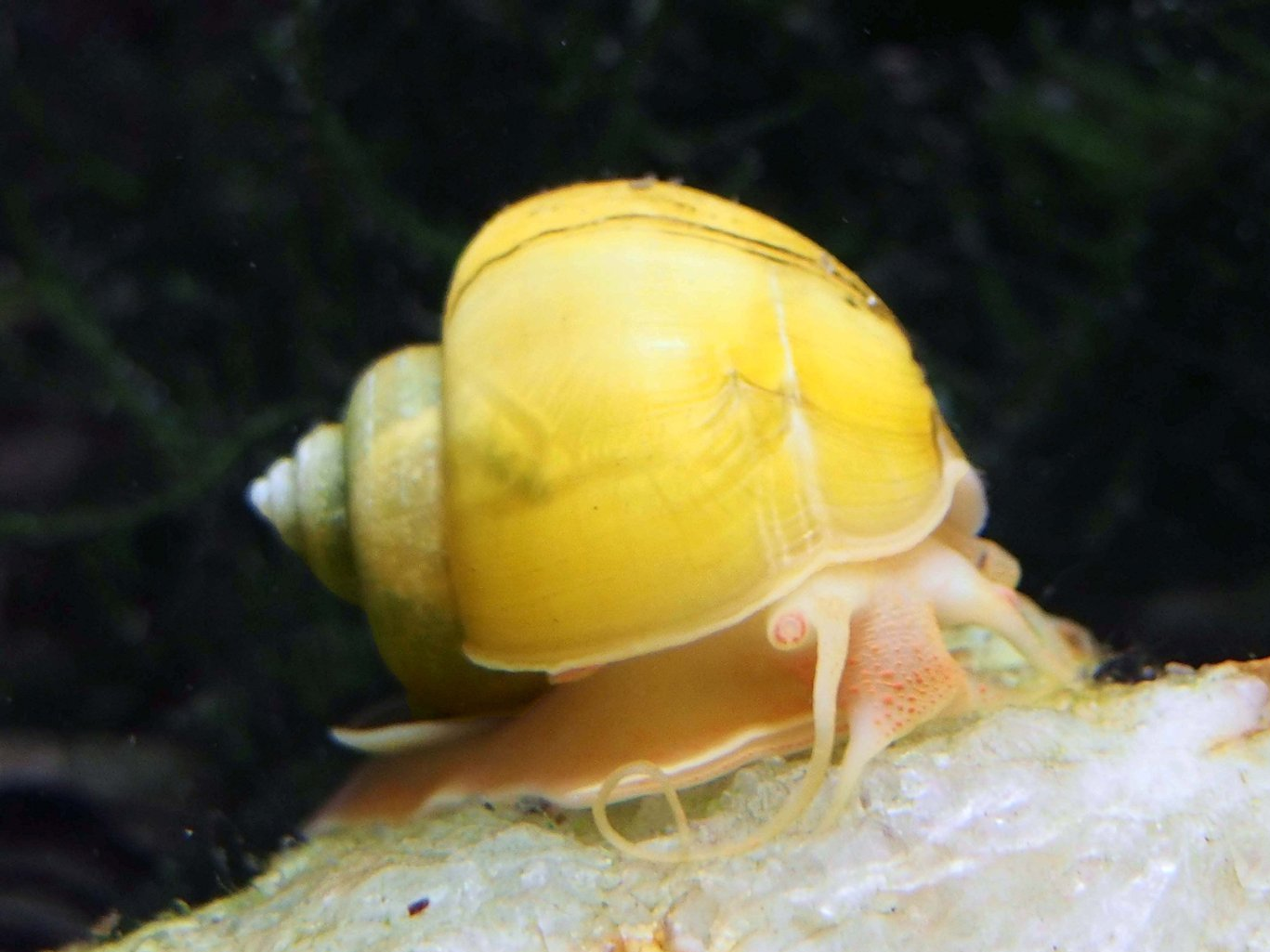 1.Улитки мочевого пузыря (Physella acuta)- Внешний вид: Каплевидные серые раковины с желтыми пятнами