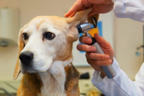 В первую очередь показаны отоскопия и цитология. Специалист визуально исследует слуховой канал собаки при помощи отоскопа. После из ушного прохода берется мазок для оценки количества и вида клеток, присутствующих в экссудате, а также наличие бактерий, дрожжевых грибков, паразитов.
