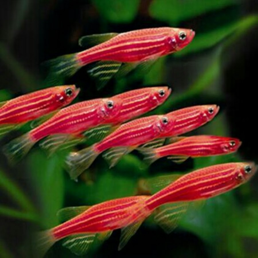 - Очень необычной является генно-модифицированная форма данио-рерио, носящая название GloFish. Удивительной особенностью этих цветных аквариумных рыбок является их флуоресцентная окраска, светящаяся в потоке ультрафиолета. При этом цвет тела рыбки зависит от того, какие чужеродные белки присутствуют в ее генотипе. Так, присутствие ДНК медузы обеспечивает особи салатовый окрас, а ДНК красного коралла – пурпурный.