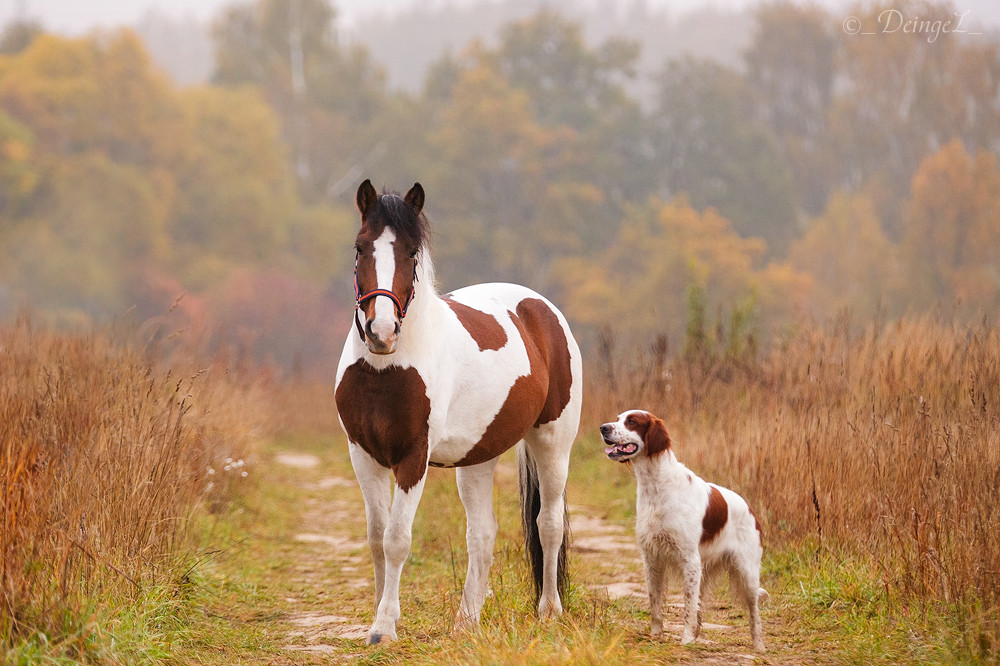 Английские спрингер-спаниели обладают низкой склонностью к преследованию, что делает их одной из самых простых пород для обучения хорошим манерам с лошадьми.