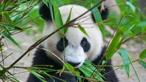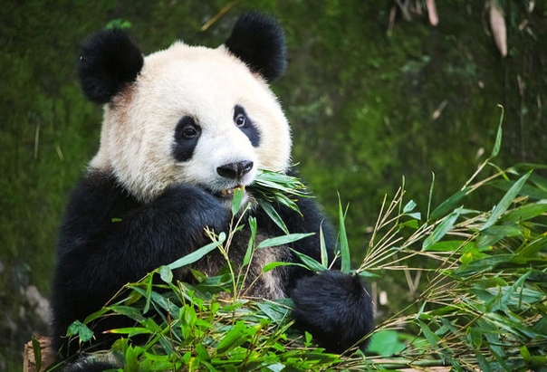 Большие панды – самые редкие представители семейства медведей, в природе их сохранилось всего 1600. Несмотря на то, что большие панды относятся к хищным животным, едят они фактически только бамбук. В день взрослое животное съедает от 12 до 38 кг бамбука, за что панды и получили свое латинское название Ailuropoda melanoleuca – «бамбуковый медведь».