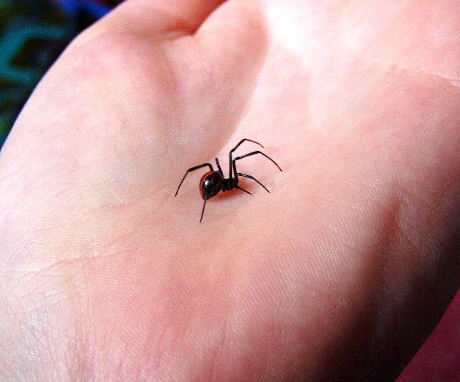 Другой распространенный ядовитый паук — черная вдова, но он отличается как от пауков-волков, так и от коричневых пауков-отшельников. У этого типа паука гладкое черное тело и красные отметины внизу живота.