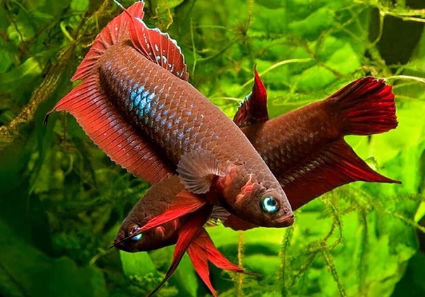 Самцы бойцовых рыбок, встретив друг друга, неизменно вступают в бой ( о «петушиных боях» мы уже рассказывали на Аквариумке). По отношению к самке они ведут себя точно также. Та тоже в долгу не остается и поначалу с не меньшим, чем самец азартом принимается угрожать и даже атаковать, но в самый разгар стычек что-то чудесным образом меняется и рыбки вместо того, чтобы скандалить вдруг сливаются в объятиях.