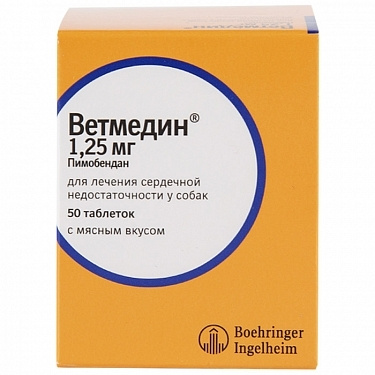Препарат для лечения сердечно-сосудистых заболеваний у собак Boehringer Ingelheim Ветмедин 10.0мг 50таблеток купить по цене 7799 ₽ с доставкой в Москве и России, отзывы, фотоОставить отзыв
