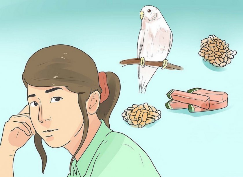 Волнистый попугайчик должен получать все необходимые питательные вещества. Кроме зернового корма давайте дополнительный (яйцо, творог), а также сырые овощи и фрукты. Также птица должна получать дневную норму кальция. Для этого повесьте мел в клетке.