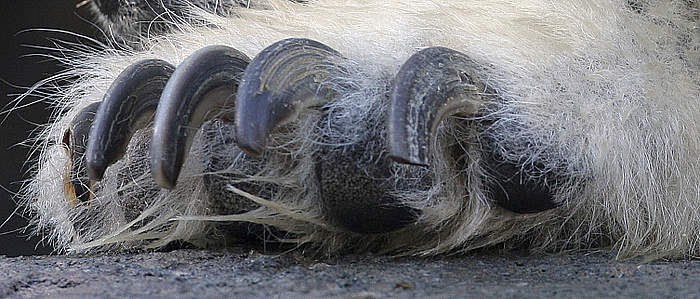 Волосы на внешнем слое шерсти полые и лишены пигмента, поэтому для наших глаз они кажутся белыми, потому что они рассеивают и отражают свет, как снег, по которому ступают медведи.