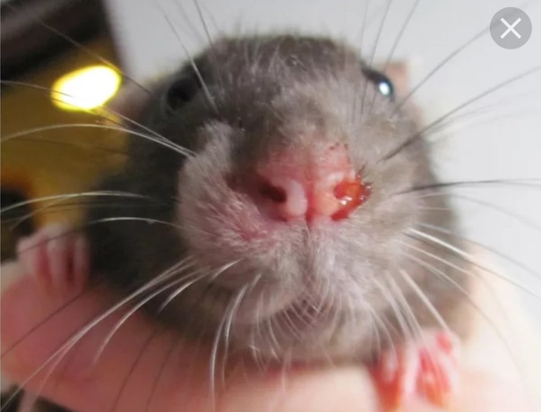 Чиханье кровью обычно вызывает инфекция микоплазмоза — в дополнение зверек нередко теряет аппетит, становится понурым и взъерошенным, часто умывает нос, чтобы очиститься от выделений. В этом случае требуется комплексное лечение, и лучше как можно скорее показать крысу ветеринару, пока не развились осложнения.