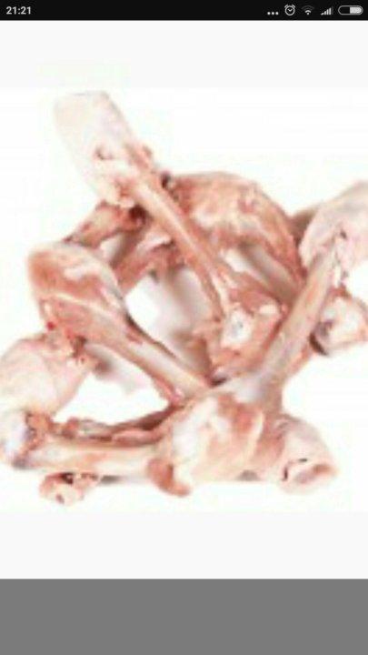 - Трубчатые куриные кости – запрет касается как фабричной, так и домашней птицы. Трубчатые кости находятся в бедрах и крыльях.