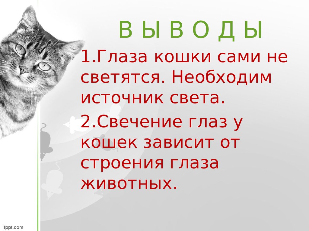 Исследовательская работа «почему у кошки глаза светятся в темноте» | Презентация к уроку (подготовительная группа):