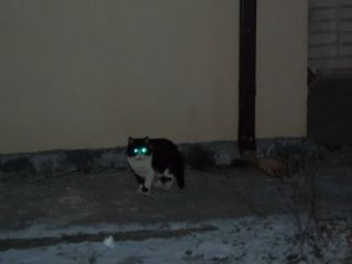 Затем мы сделали снимок в полной темноте. В комнате совсем не было света, поэтому мы использовали фотовспышку. Зрачки глаз у кошки были расширены. Глаза блестели, но все же не светились.