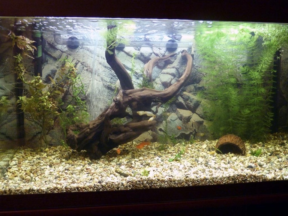 Очистите аквариум, просифонив грунт и удалив погибшие листья растений.