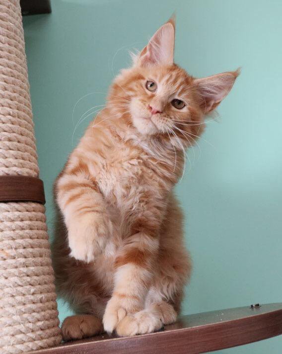 Обычное количество пальцев у мейн-куна 18; по пять пальцев на каждой из передних лап и по четыре на каждой из задних. Это стандарт для всех кошек.