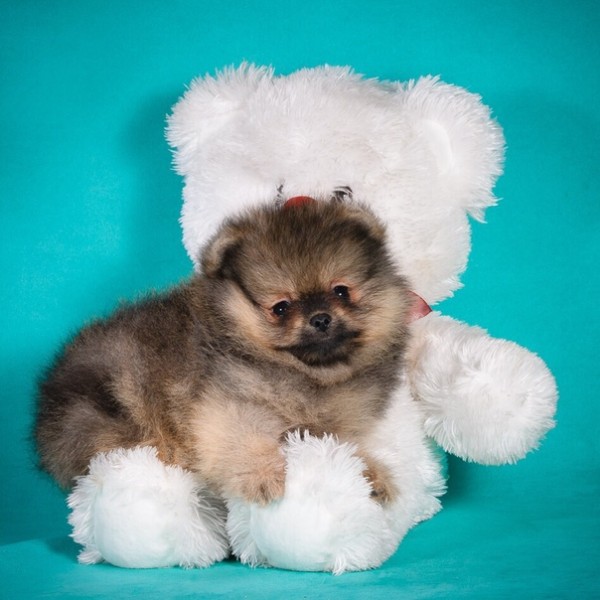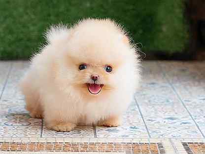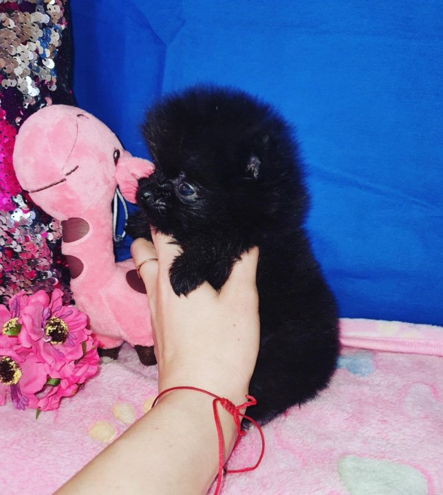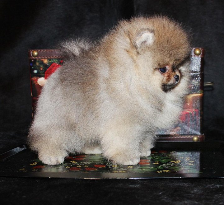 - Игрушечный микро померанский шпиц имеет широко посаженные глаза, приплюснутый носик и похож на собачек-игрушек в витринах детских магазинов.