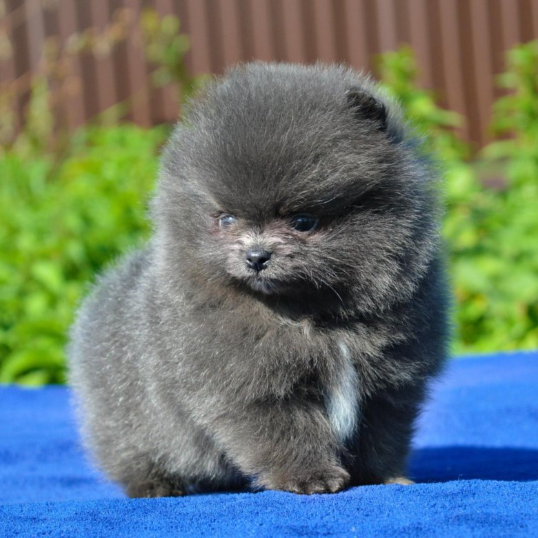 Черный померанский шпиц медвежьего типа встречается чаще всего в этой породе. У настоящего представителя не только окрас шерсти должен быть данного цвета, но и нос, ободок глаз и губы. На черной шерсти загрязнения видны не сильно, но зато ворсинки и цветной мусор будут сразу замечены.