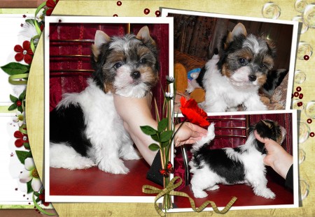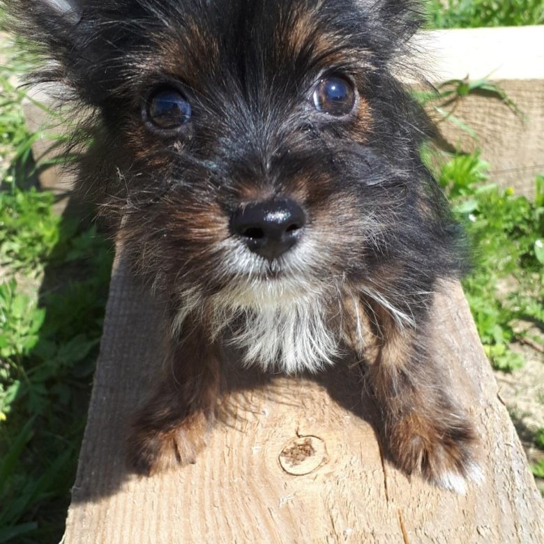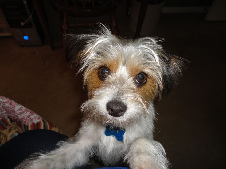 Помесь йоркширских терьеров и джек — расселов – это небольшие собаки вырастающие максимум до 30 см в холке, с длинным и мягким шерстным покровом черно — коричневого или бело — черно — коричневого цвета.
