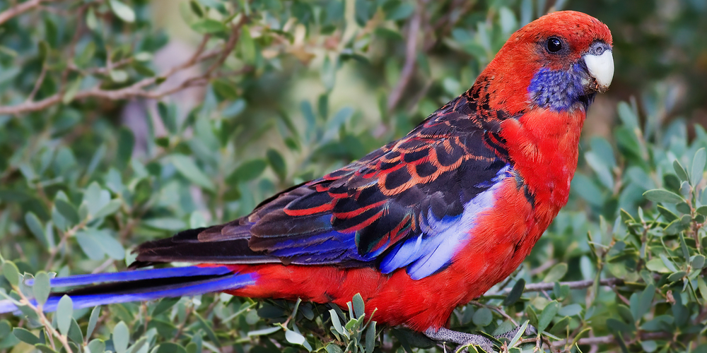 Неудивительно, что розелла имеет ярко-красную и синюю окраску. птицы пользуются большим спросом среди домашних животных. Они тоже манят вас своей болтовней и свистом!