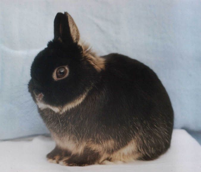 Нидерландский карликовый кролик – очень миниатюрный кролик с весом чуть больше 1 кг. Имеет компактное туловище, короткие вертикально стоячие округлые ушки. Эта порода кроликов очень распространена в качестве домашних питомцев, но тем не менее это не совсем подходящий вариант для детей, так как порода обладает своеобразным характером. Варианты окраса могут быть разные.
