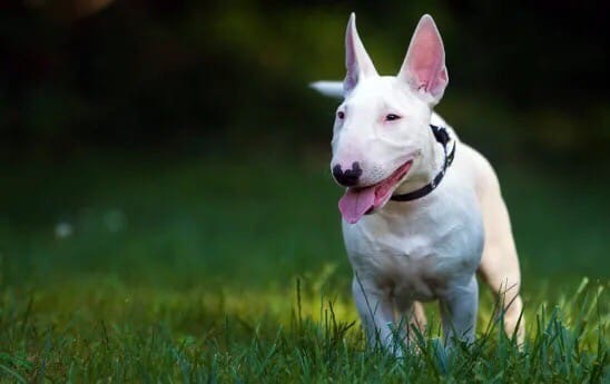 - Бультерьер. Бойцовый пес английской породы отличается средним весом в 30 кг и ростом до 45 см. Эта мускулистая собака имеет коренастое телосложение, округлый торс и длинную голову яйцевидной формы. Порода выводилась для травли кабанов и быков, поэтому если бультерьер сожмет челюсти, то без хозяина жертву освободить не удастся.