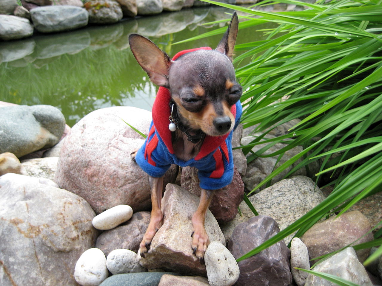 На прогулку в прохладную погоду рекомендуется одевать комбинезон, иногда защитные сапожки, так как лапы быстро замерзают или травмируются.