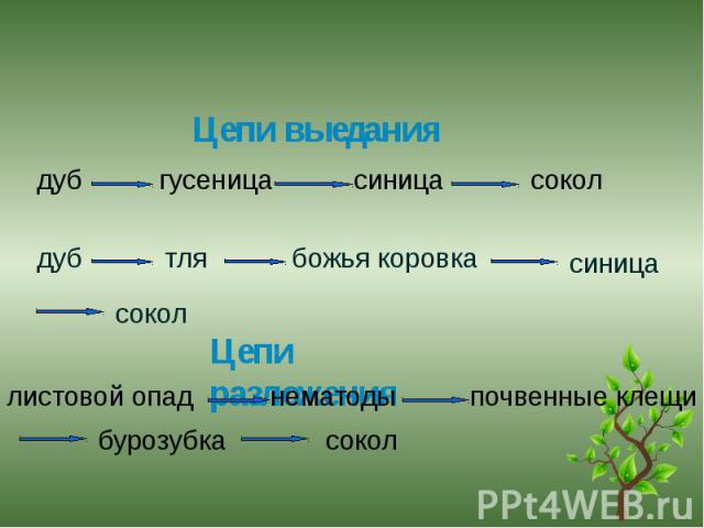 Цепи питания этого типа начинаются от детрита — органических остатков растительного и животного происхождения.
