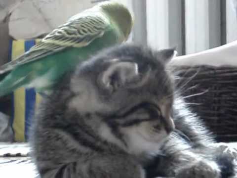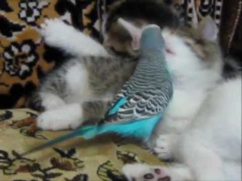 Сегодня живые существа, известные своей враждебностью друг к другу, могут кормить в одном доме. Например, вы можете создать красивую обстановку, приучив котенка к волнистому попугайчику .
