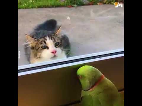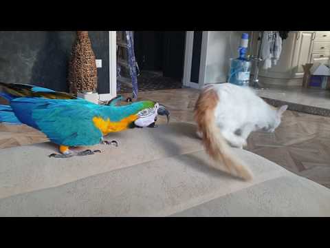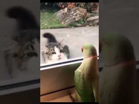 На видео вы можете наблюдать сверх наглого попугая который достаёт кота.