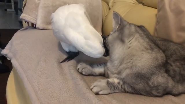 В следующей нарезке видеороликов хорошо заметно, что именно коты первыми идут на уступки, в то время как попугаи просто не видят никаких границ в желании пообщаться с ними поближе.