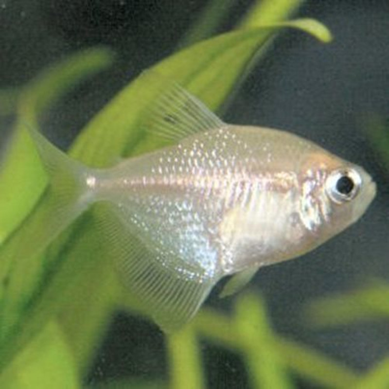 Эта небольшая стайная рыбка родом из Южной Америки имеет красивую серебристую голову, полностью прозрачные туловище и все плавники, кроме хвостового… Хвостовой же плавник у основания окрашен в яркий кроваво-красный цвет. Стайка рыбок выглядит очень привлекательно, благодаря алым хвостовым огонькам, вспыхивающим на фоне полумрака или зелени.