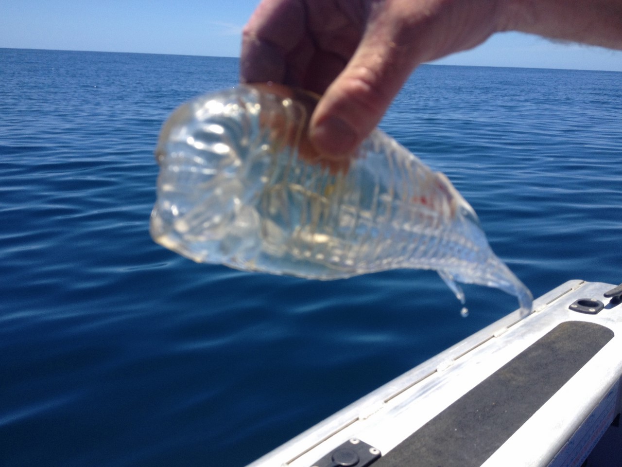 Медузы являются свободно плавающими членами филума Cnidaria.Они встречаются в каждом океане, от поверхности до морских глубин. Многие желе настолько прозрачны, что их почти невозможно увидеть. Один из них, представленный выше, принадлежит к роду Arctapodema и имеет размер 2,5 сантиметра в длину. долго). (Фото Билла Куртсингера)Эта крошечная прозрачная рыбка может спасти вашу жизнь