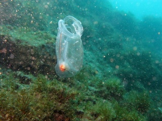 Этот прозрачный «непонятно кто» по-иностранному называется Salp. Он очень похожена медузу, достигает размеров от 1 до 10 см, питается фитопланктоном и по форме напоминает бочку.