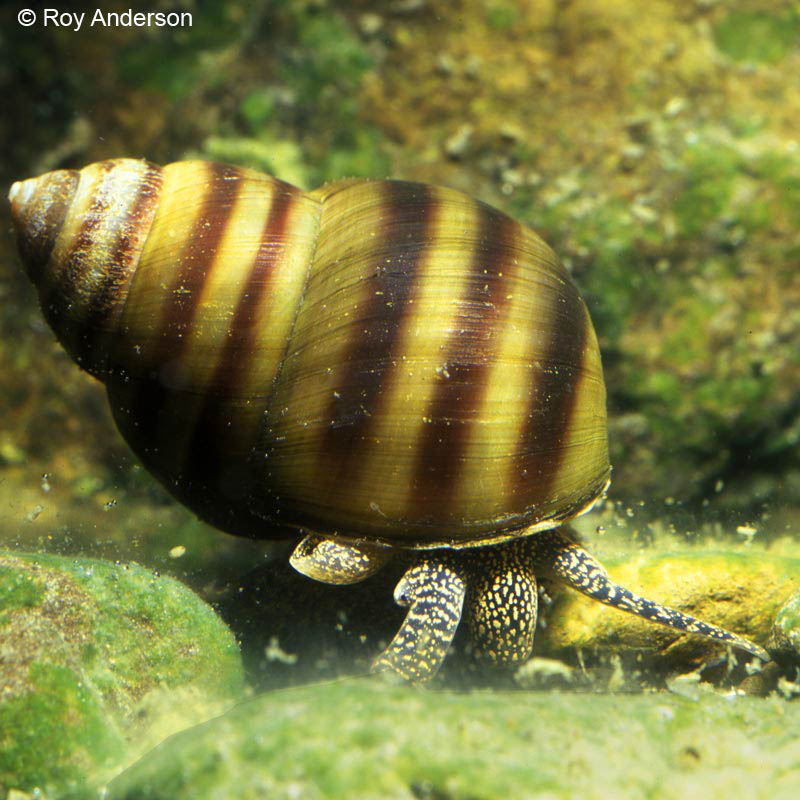 Улитки питаются некоторыми видами водорослей, в частности нитчатыми или диатомовыми водорослями, но есть и водоросли, которые они не могут переваривать, например, чернобородые , сине-зеленые или мокрицы d.