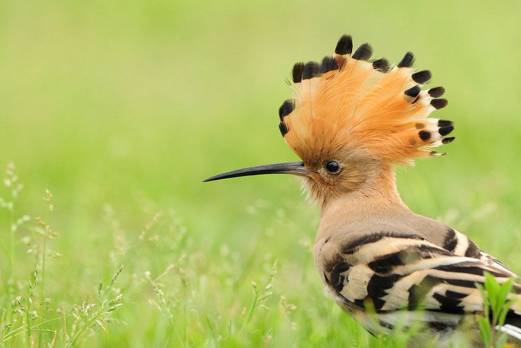 - Птица с пестрым оперением, веерообразным хохолком и изогнутым клювом 4 буквы