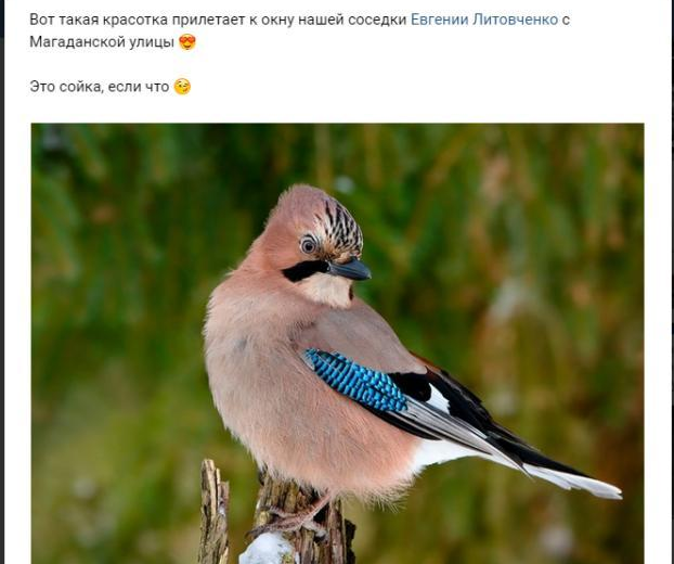 Не верите? Сходите в парк, сойка не станет от вас прятаться, а совсем наоборот…