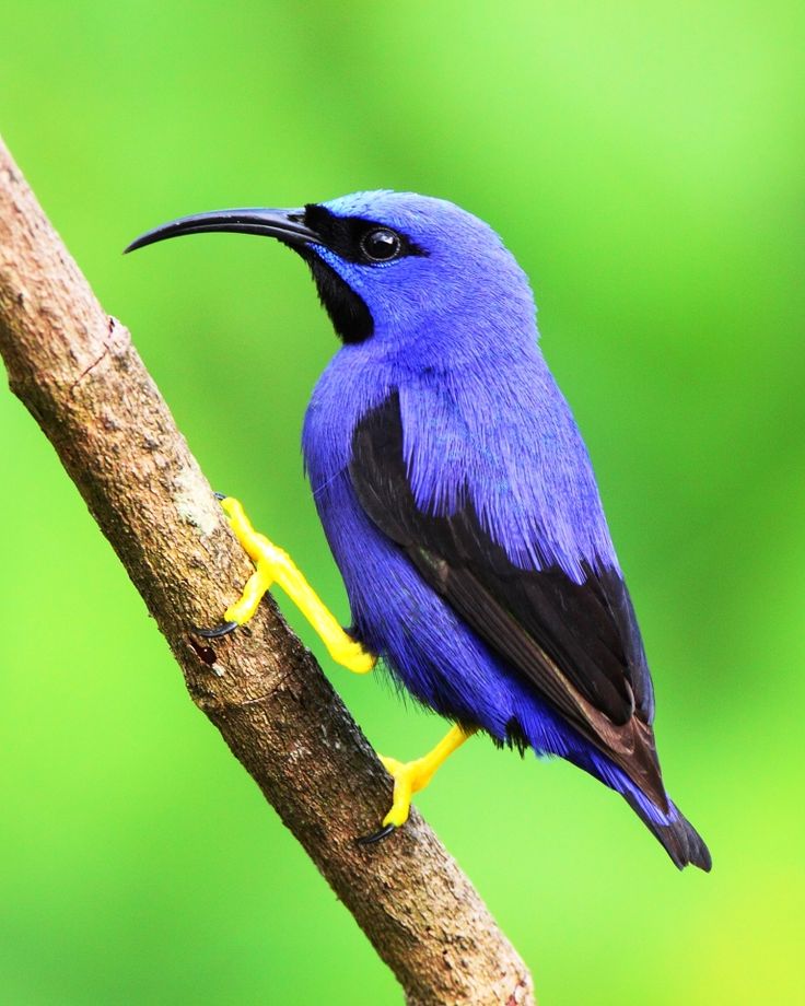 Ирена голубая – это птица, которая относится к семейству иреновых. Спина у птички отличается блестящим и ярким цветом, а вся остальная ее часть черная.