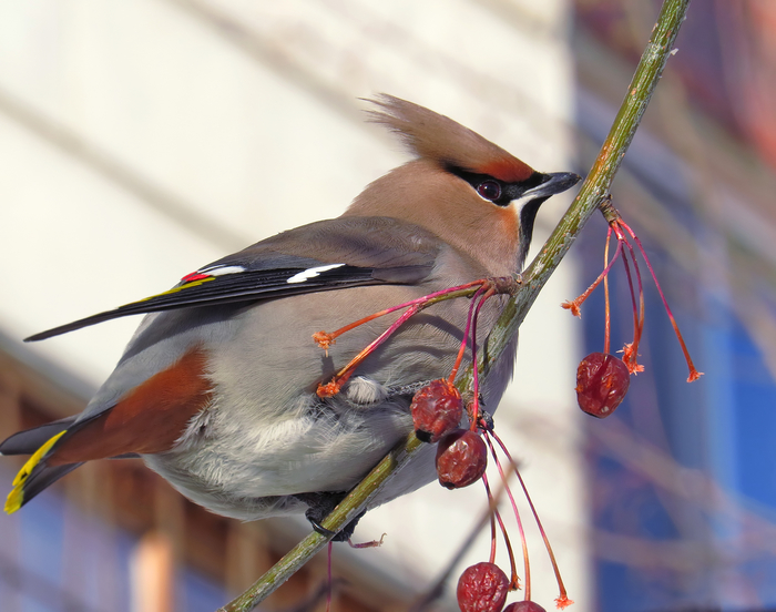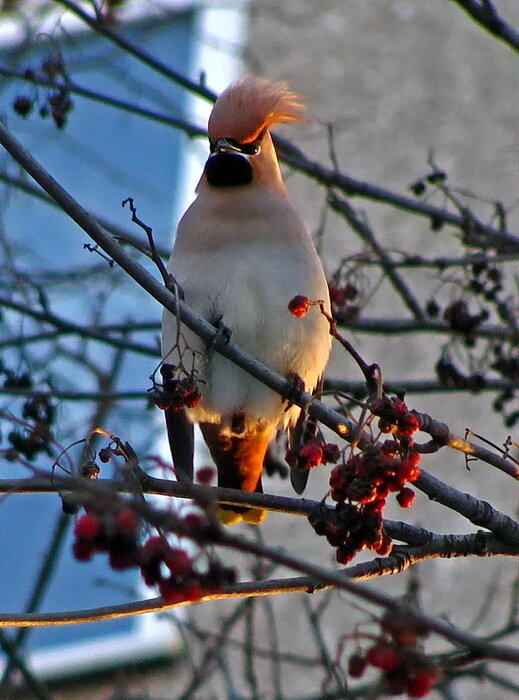 птица с хохолком на голове. Пьяные свиристели