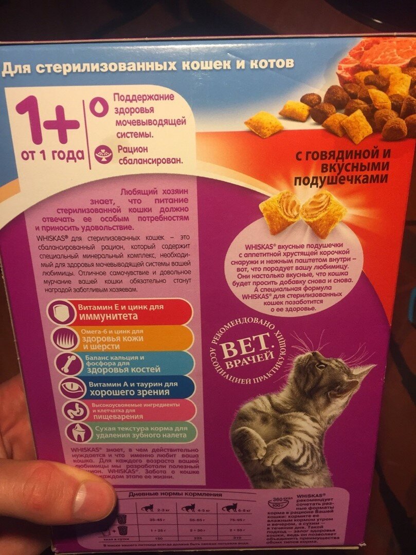 Все рекомендации по количеству корма указаны на пачке. Производители предлагают и готовые рационы для кошек, столкнувшихся с разными болезнями. Еда в пачке уже откорректирована под потребности вашего кота – это очень удобно. Однако часто есть сомнения в составе: что же намешал производитель в гранулы? Тут только один совет – выбирайте производителя с репутацией и читайте состав. Выбор только за вами.
