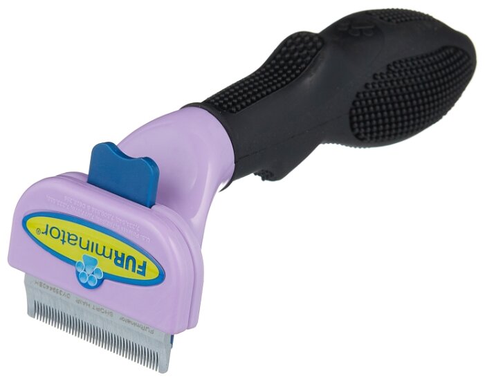 - Фурминатор. Это прямоугольная расческа с зубьями, имеет прорезиненную рукоятку. Идеально подходит для вычесывания животного при линьке, эффективно избавляет животного от омертвевших шерстинок. Кроме того, фурминатором можно делать животному своеобразный массаж: разгоняя кровь и сбалансировано распределяя по телу прослойку жира. Владельцам, которые часто задумываются, как вычесать колтуныу кошки, также подойдет это приспособление.