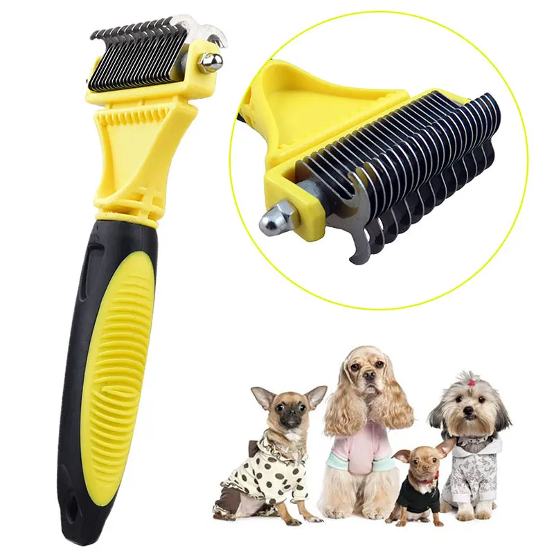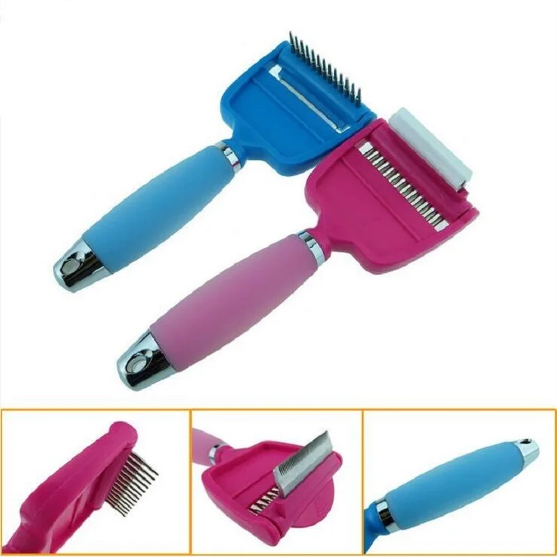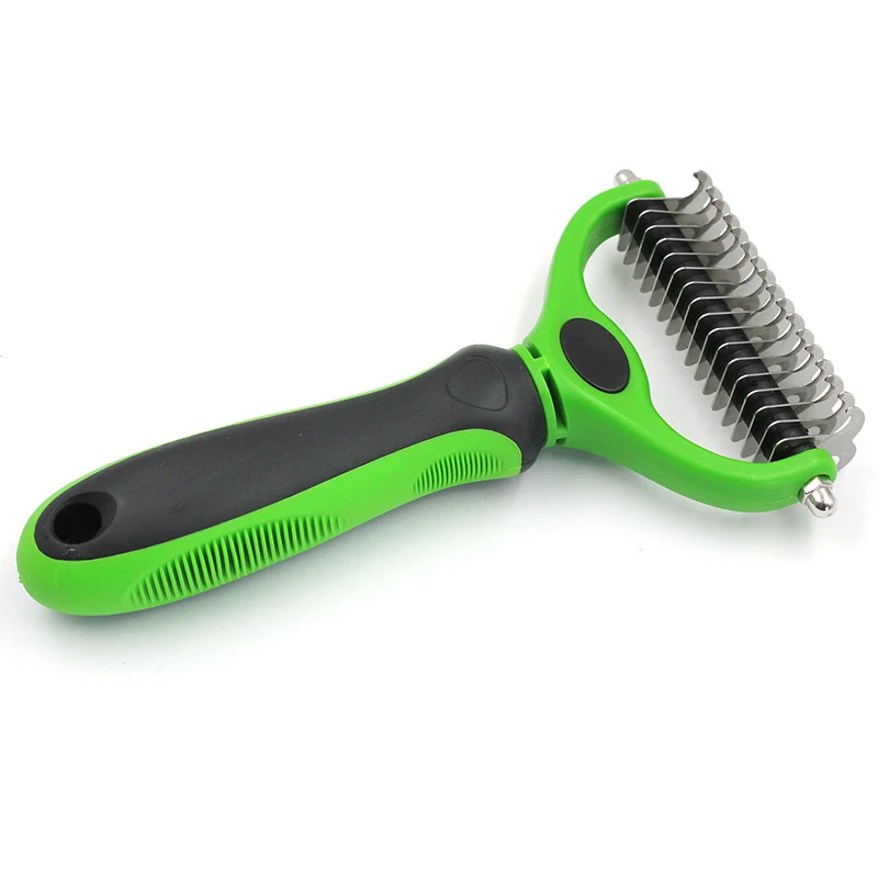 Щётка триммер дешеддер для животных 2х сторонний, расчёска грумер пуходёрка вычёсывания шерсти кошек и собак, инструмент приспособление короткошерстных длинношерстных пород.