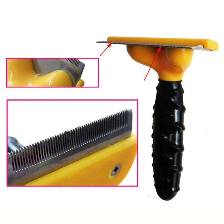 Пуходерка для кошек и собак, расческа кошек, дешеддер, щетка вычесывания шерсти, цвет: желтый, 13 см х 11 см, размер L