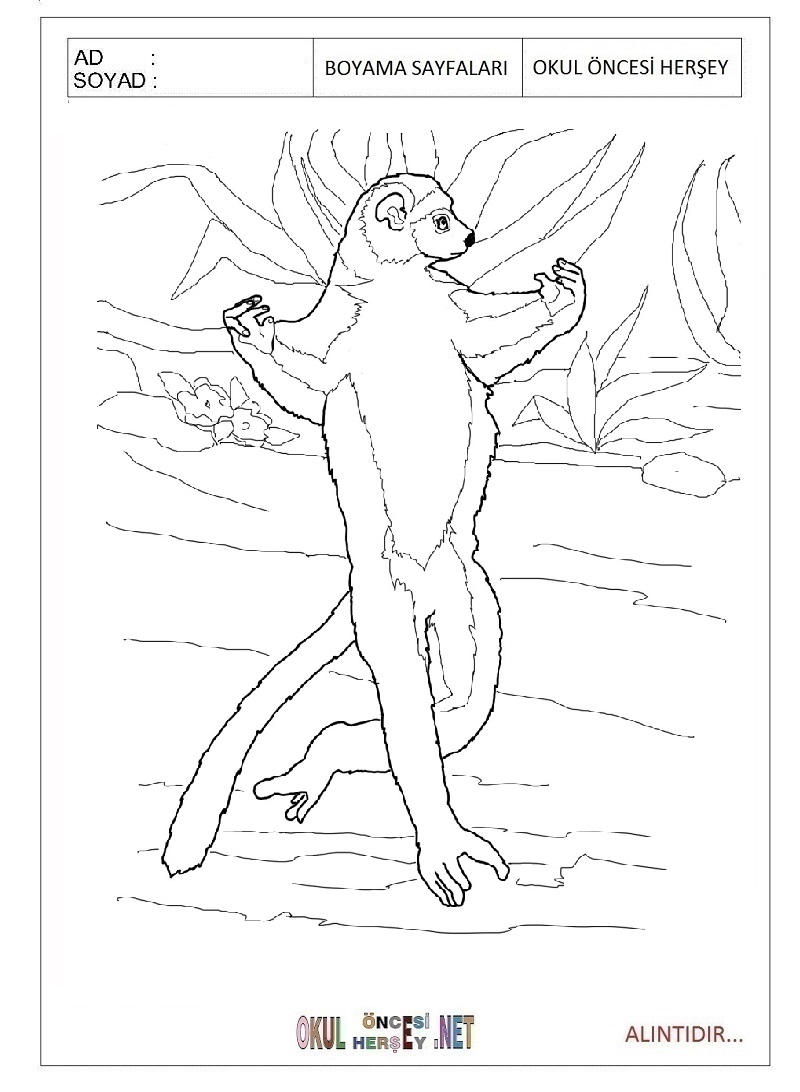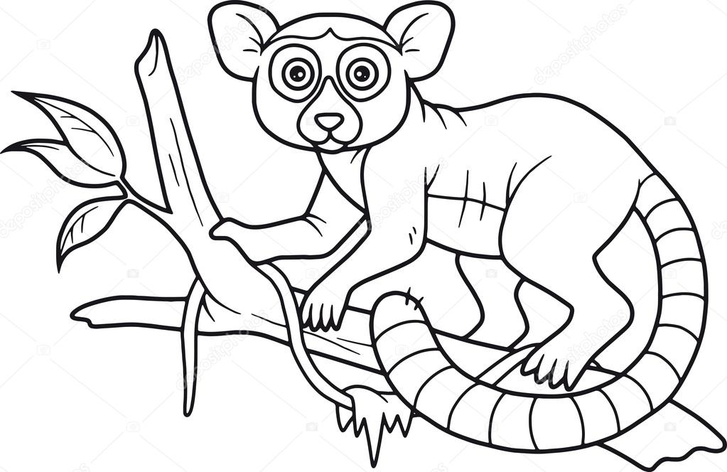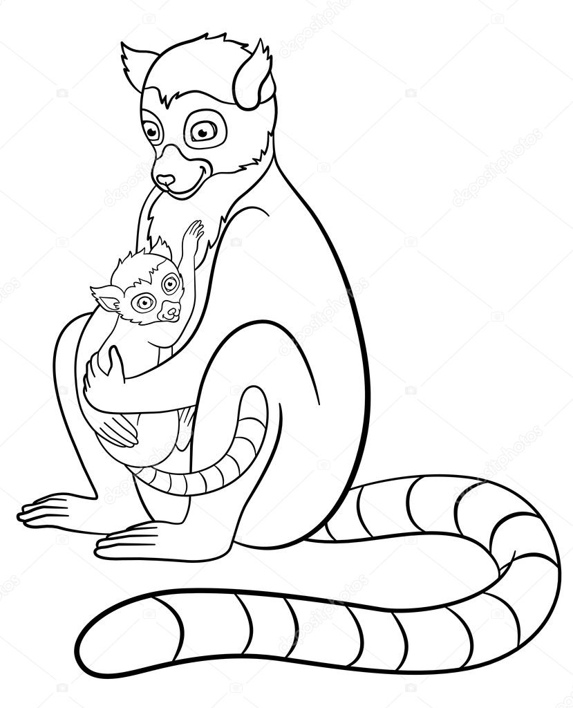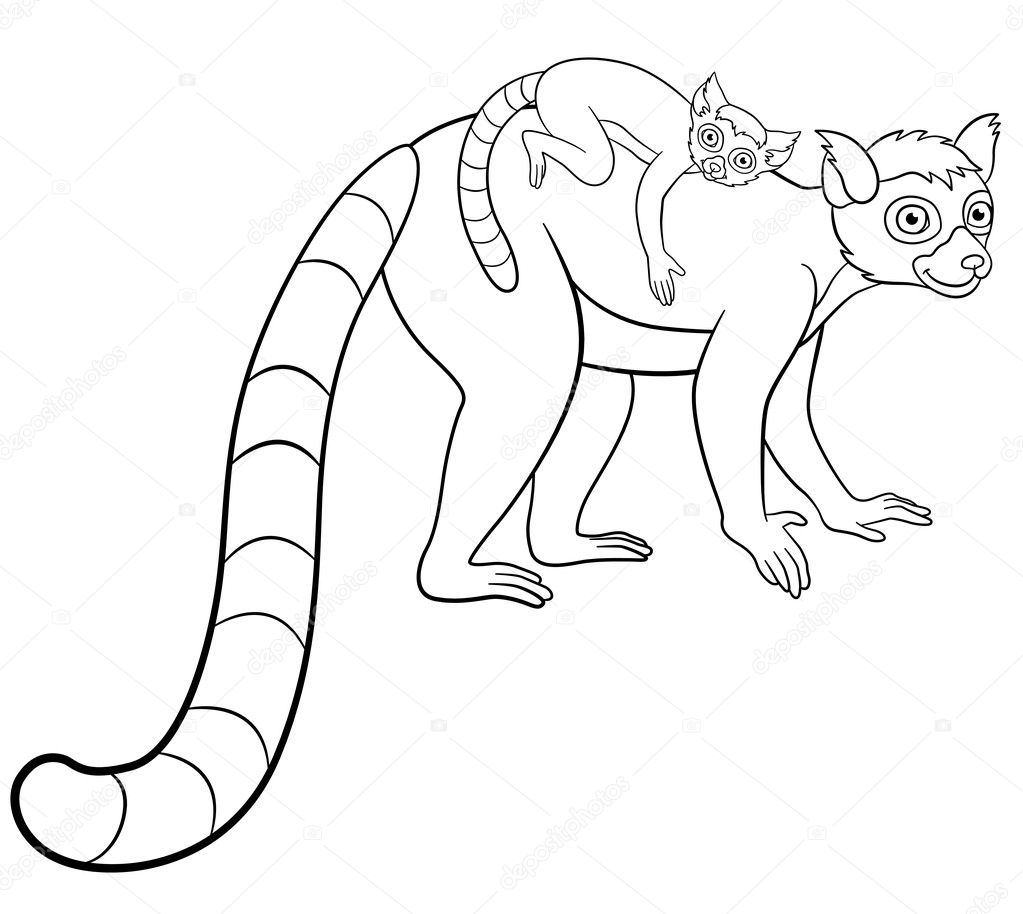 Раскраски. Маленький милый лемур стоит и улыбается.Клипарты, векторы, и Набор Иллюстраций Без Оплаты Отчислений. Изображение 62894502.Раскраски. Маленький милый лемур стоит и улыбается.